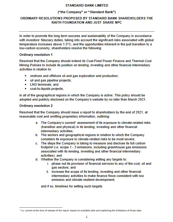 Standard Bank climate risk ordinary resolution 2